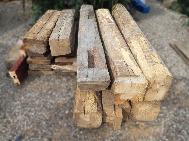 Stan jak na zdjęciach Do obrobienia z zewnętrznej strony 6 belek 180-200cm 2 belki 100cm Różne przekroje Bez ...